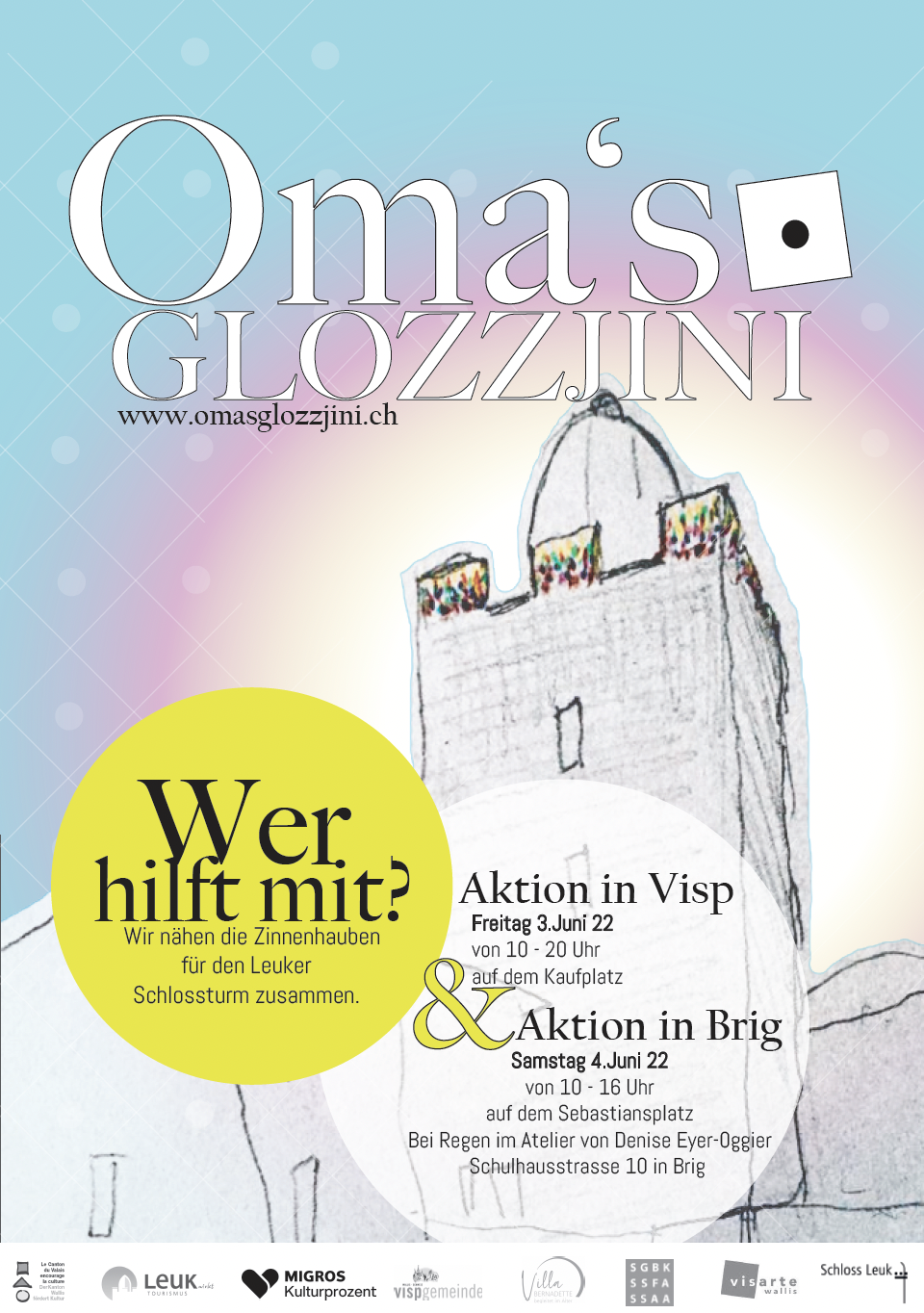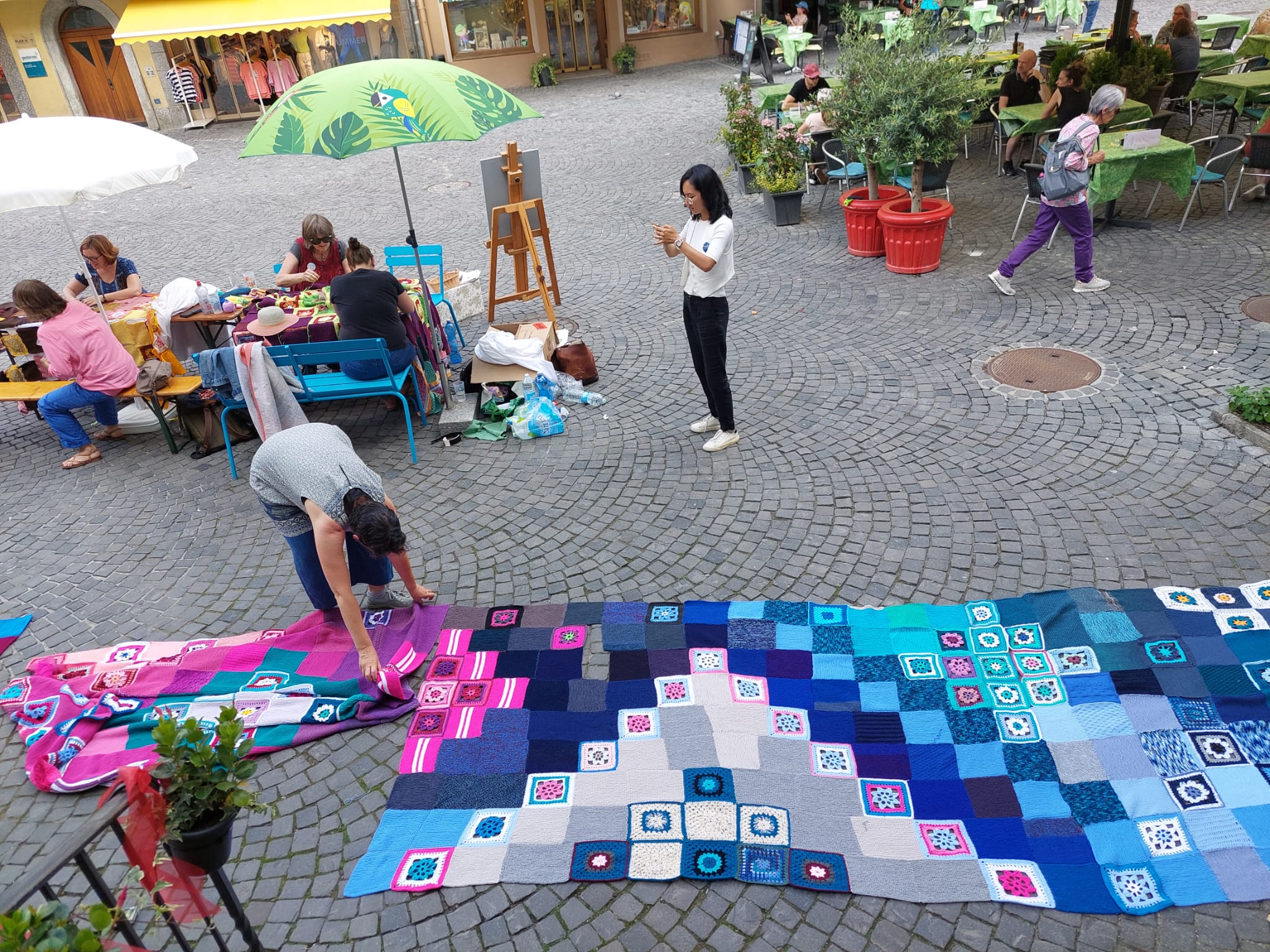 Wir sind in der nächsten Etappe in unserem Unternehmen angekommen: Dem Zusammennähen der – dank euch unzähligen – Glozzjini zu Decken. Dies wollen wir gemeinsam tun. Deshalb laden wir Euch ein, uns an den beiden ersten Aktionstagen anfangs Juni auf dem Kaufplatz in Visp oder dem Sebastiansplatz in Brig zu besuchen und ein Weile mitzunähen. Auf den Plätzen ist auch sonst so einiges los.