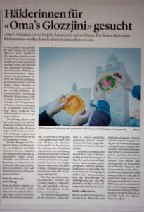 Im Walliser Boote ist gestern ein Artikel zu unserem Projekt erschienen. Wir bedanken uns herzlich bei Natalie Benelli für diesen tollen Bericht. Es gab auch gleich schon die ersten Anmeldungen und fleissige Hände haben begonnen «Glozzjini» anzufertigen 😀 Toll!